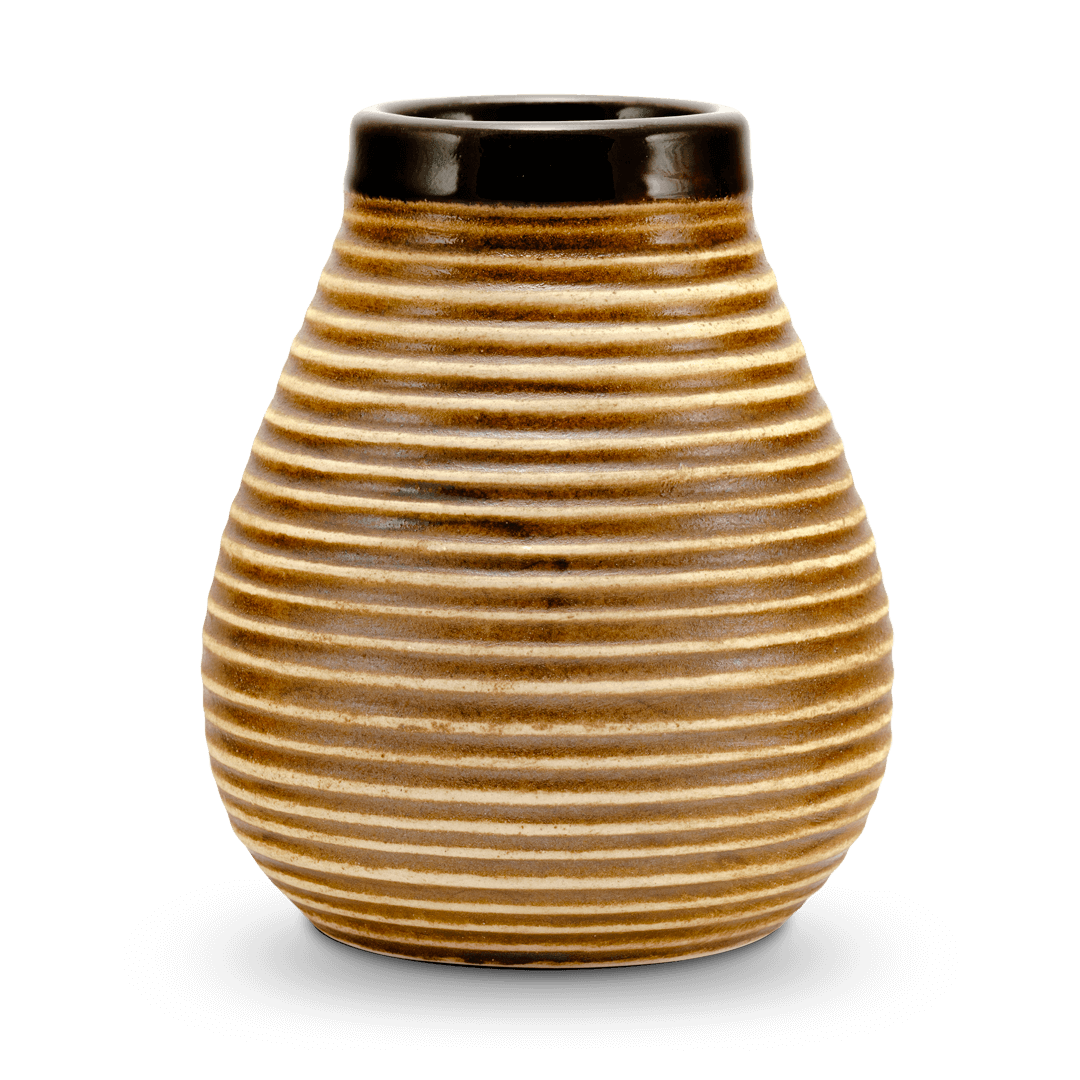 Etwas Pflegeleichter als die Kalebasse aus Kürbis, ist diese Nachbildung aus Keramik. Der Geschmack der Mateaufgüsse aus einem Keramikmate ist pur und klar, ohne den leicht bitteren Eigengeschmack, den ein Matekürbis mit sich bringt. Das empfinden einige als Vor- andere als Nachteil. Darüber hinaus kannst du deinen Mate auch mit Hafermilch, Fruchtsaft oder Zucker verfeinern, das solltest du im Kürbis nicht tun, da er sonst schimmeln kann. Ein Nachteil gegenüber der Kürbiskalebasse, ist die glatte Oberfläche des Inneren, bestimmte Zubereitungsarten gelingen nicht ganz so gut wie mit der Naturkalebasse.